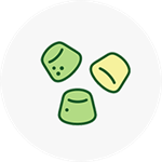 Jeleuri (gummy): conțin ingrediente într-o masă gumată.